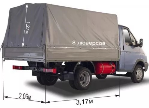 Краткое описание «Тент автомобильный на ГАЗ 3302 (ГАЗель) нового образца односторонняя»