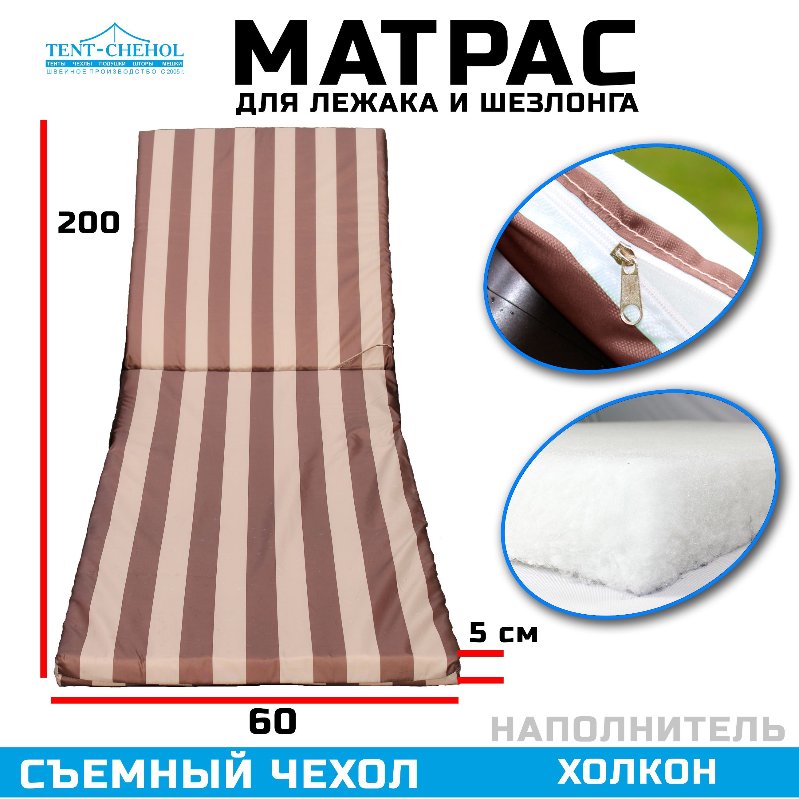 Он имеет длину 200 см, ширину 60 см и высоту 5 см, что идеально подходит для большинства шезлонгов. Наполнитель из холкона обеспечивает мягкую, но поддерживающую поверхность, которая будет поддерживать вашу спину и предотвращать боли в теле.
