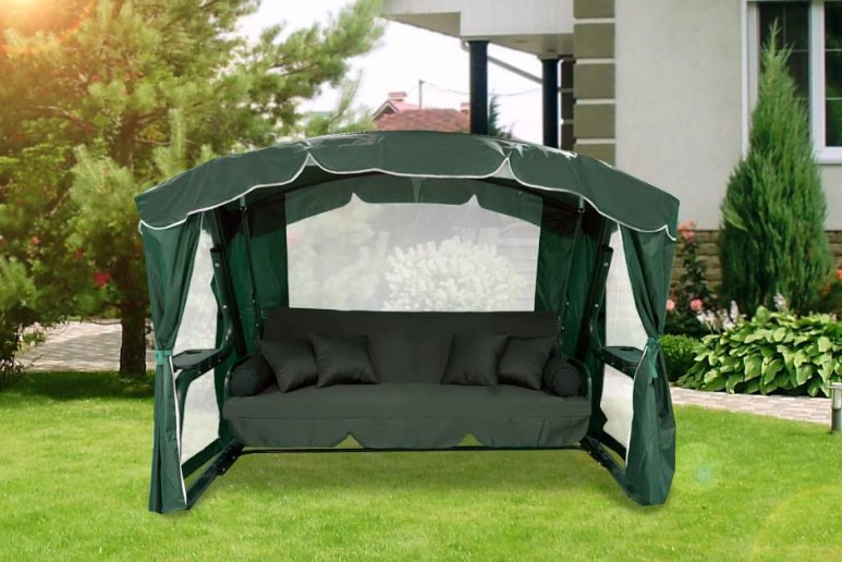 У нас вы можете купить комплект для садовых качелей Сингапур. Весь комплект выполнен в зелёном цвете, в него входит тент, а также москитная сетка. Все тканевые элементы данного комплекта изготовлены из материала оксфорд 210, который не пропускает воду, не портится от солнечных лучей, не выгорает. Если вы хотите спокойно отдыхать на своих садовых качелях, при этом не беспокоясь за то, что погода нарушит ваш отдых, такой комплект именно для вас.